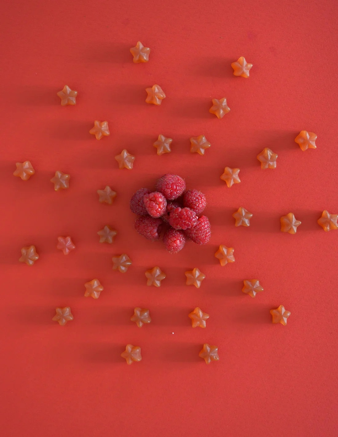 Ostatní ingredience: glukózový sirup, cukr, voda, želírující látka (pektiny), regulátor kyselosti (kyselina citronová), maltodextrin, regulátor kyselosti (citrany sodné), kokosový olej, barvivo (antokyaniny), přírodní aroma, protihrudkující látka (karnaubský vosk).